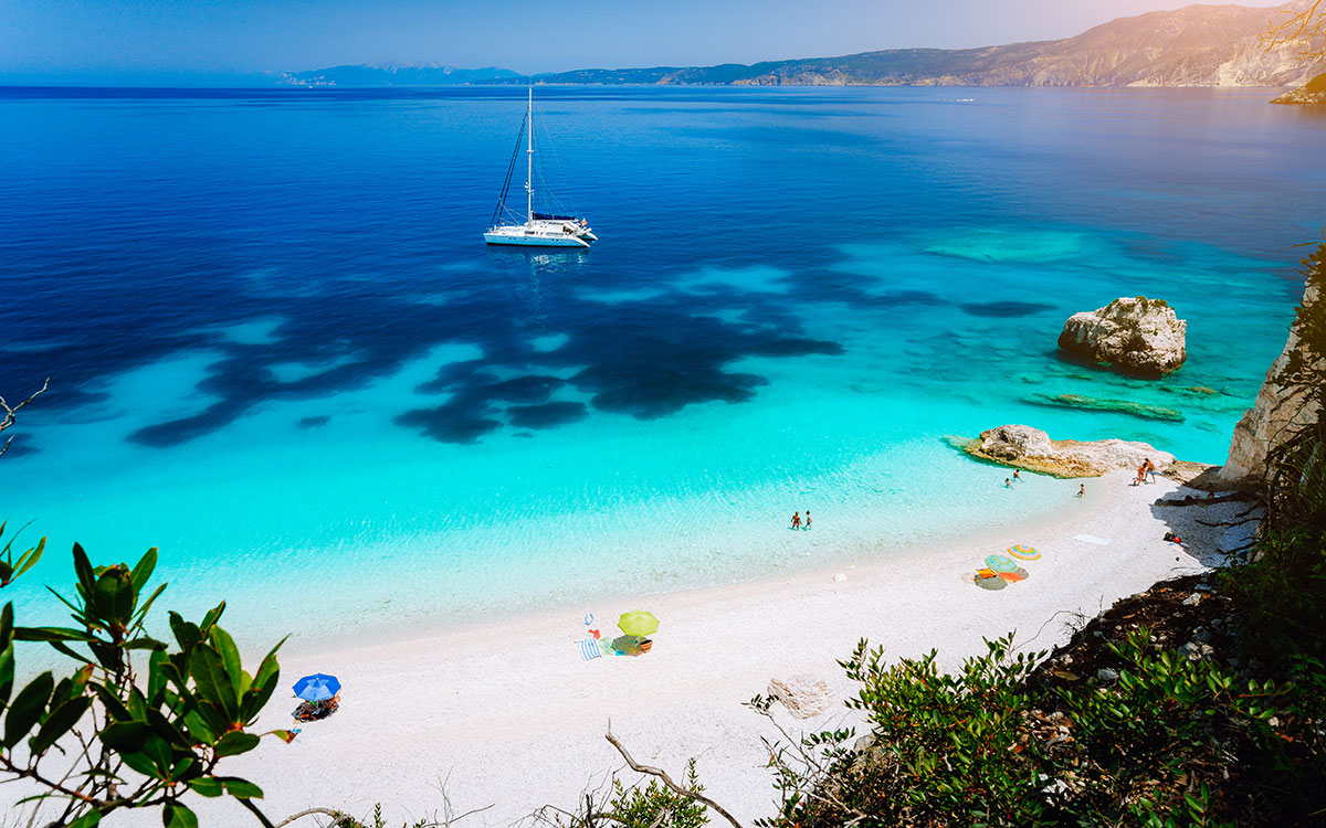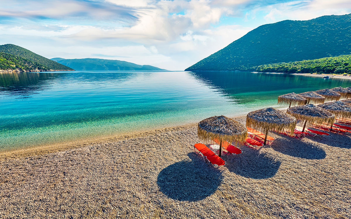 architecture, white pebble beaches and crystal-clear ocean