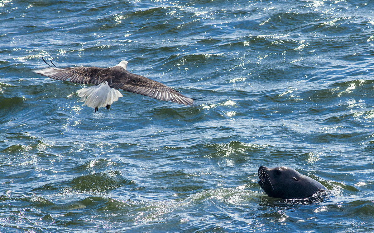 Wildlife is abundant in Glacier Bay, making it a haven for nature enthusiasts and wildlife photographers. The waters of the bay are home to a variety of marine mammals, including humpback whales, orcas, sea lions, seals, and porpoises. Visitors may also spot bald eagles soaring overhead or perched on trees along the shoreline. The park is teeming with birdlife, with over 270 species recorded, including puffins, Arctic terns, and various species of gulls. Brown bears, mountain goats, and moose can also be seen wandering the park's rugged terrain.